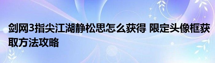 劍網3指尖江湖靜松思怎么獲得 限定頭像框獲取方法攻略