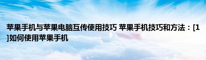 大家好,小柏來為大家解答以上問題。蘋果手機與蘋果電腦互傳使用技巧,蘋果手機技巧和方法:[1]如何使用蘋果手機很多人還不知道,現在讓我們一起來看看吧!