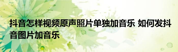 大家好,小琪來為大家解答以上問題。抖音怎樣視頻原聲照片單獨加音樂,如何發(fā)抖音圖片加音樂這個很多人還不知道,現(xiàn)在讓我們一起來看看吧!