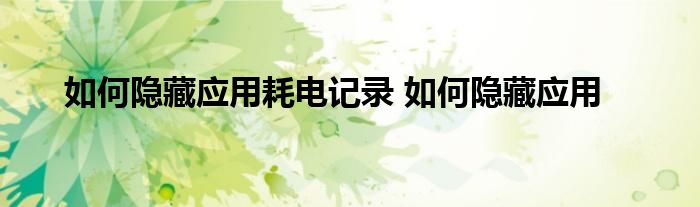 大家好,小琪來為大家解答以上問題。如何隱藏應用耗電記錄,如何隱藏應用這個很多人還不知道,現(xiàn)在讓我們一起來看看吧!