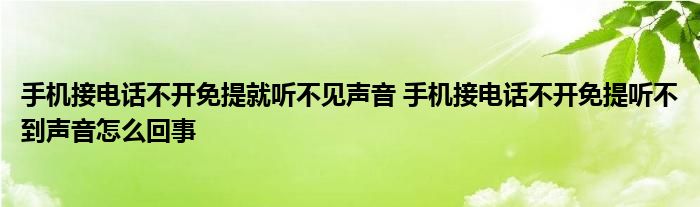 大家好,小琪來為大家解答以上問題。手機接電話不開免提就聽不見聲音,手機接電話不開免提聽不到聲音怎么回事這個很多人還不知道,現在讓我們一起來看看吧!