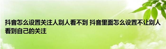 大家好,小琪來為大家解答以上問題。抖音怎么設置關注人別人看不到,抖音里面怎么設置不讓別人看到自己的關注這個很多人還不知道,現(xiàn)在讓我們一起來看看吧!