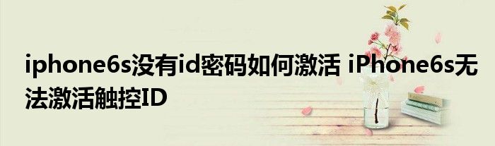大家好,小詹來為大家解答以上問題。iphone6s沒有id密碼如何激活,iPhone6s無法激活觸控ID很多人還不知道,現在讓我們一起來看看吧!