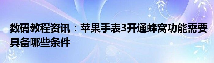現在各種各樣的數碼設備在我們的生活當中幾乎可以說是無處不在,平時我們使用的手機,IP,電腦等等這些都屬于數碼設備,那么這些數碼設備當中會存在著很多的功能,當然在我們使用的過程當中自然也會出現說各種的問題,那么我們如何才能去解決這些問題以及使用好這些功能呢?這個時候就需要我們去了解這些功能及問題的解決方法,今天小編就來給大家分享下,關于蘋果手表3開通蜂窩功能需要具備哪些條件方面的問題及功能的詳細內容,希望下面小編為大家分享的內容對大家來說有一定的幫助哦。蘋果手表3開通蜂窩功能需要具備哪些條件?
