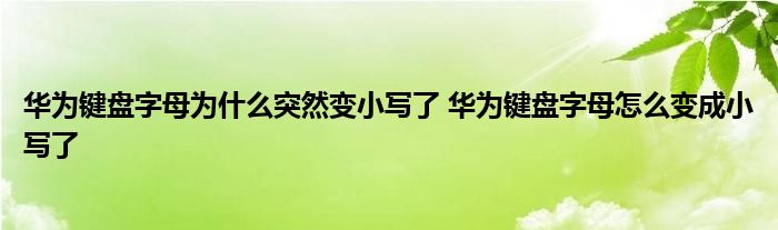 大家好,小琪來為大家解答以上問題。華為鍵盤字母為什么突然變小寫了,華為鍵盤字母怎么變成小寫了這個很多人還不知道,現在讓我們一起來看看吧!