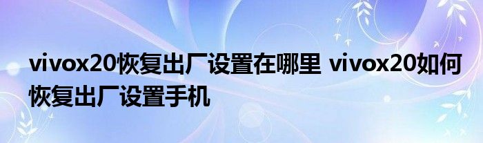 大家好,小詹來為大家解答以上問題。vivox20恢復出廠設置在哪里,vivox20如何恢復出廠設置手機很多人還不知道,現在讓我們一起來看看吧!