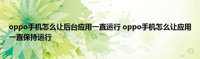 大家好,小琪來為大家解答以上問題。oppo手機怎么讓后臺應用一直運行,oppo手機怎么讓應用一直保持運行這個很多人還不知道,現在讓我們一起來看看吧!
