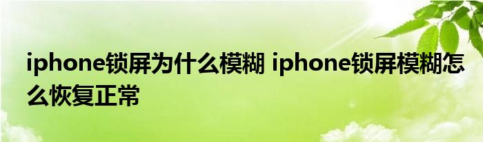 大家好,小琪來為大家解答以上問題。iphone鎖屏為什么模糊,iphone鎖屏模糊怎么恢復(fù)正常這個(gè)很多人還不知道,現(xiàn)在讓我們一起來看看吧!