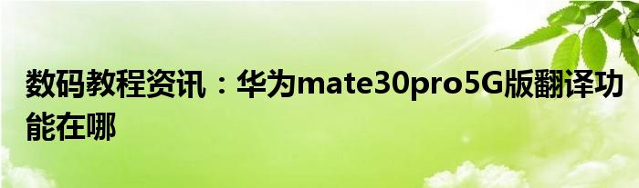 現(xiàn)在各種各樣的數(shù)碼設(shè)備在我們的生活當(dāng)中幾乎可以說是無處不在,平時我們使用的手機,IP,電腦等等這些都屬于數(shù)碼設(shè)備,那么這些數(shù)碼設(shè)備當(dāng)中會存在著很多的功能,當(dāng)然在我們使用的過程當(dāng)中自然也會出現(xiàn)說各種的問題,那么我們?nèi)绾尾拍苋ソ鉀Q這些問題以及使用好這些功能呢?這個時候就需要我們?nèi)チ私膺@些功能及問題的解決方法,今天小編就來給大家分享下,關(guān)于華為mate30pro5G版翻譯功能在哪方面的問題及功能的詳細內(nèi)容,希望下面小編為大家分享的內(nèi)容對大家來說有一定的幫助哦。華為mate30pro 5G版翻譯功能在哪
