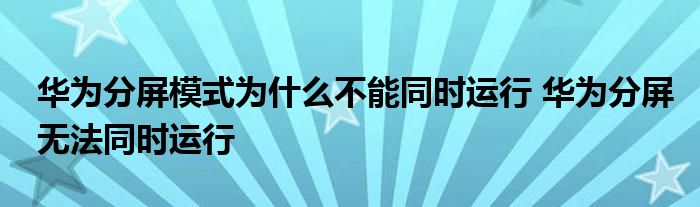 大家好,小琪來為大家解答以上問題。華為分屏模式為什么不能同時運行,華為分屏無法同時運行這個很多人還不知道,現在讓我們一起來看看吧!