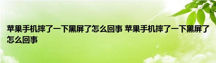 大家好,小詹來為大家解答以上問題。蘋果手機(jī)摔了一下黑屏了怎么回事,蘋果手機(jī)摔了一下黑屏了怎么回事很多人還不知道,現(xiàn)在讓我們一起來看看吧!