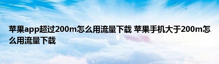 大家好,小詹來為大家解答以上問題。蘋果app超過200m怎么用流量下載,蘋果手機大于200m怎么用流量下載很多人還不知道,現在讓我們一起來看看吧!