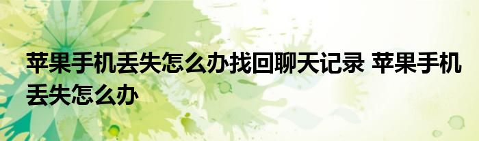 大家好,小柏來為大家解答以上問題。蘋果手機(jī)丟失怎么辦找回聊天記錄,蘋果手機(jī)丟失怎么辦很多人還不知道,現(xiàn)在讓我們一起來看看吧!