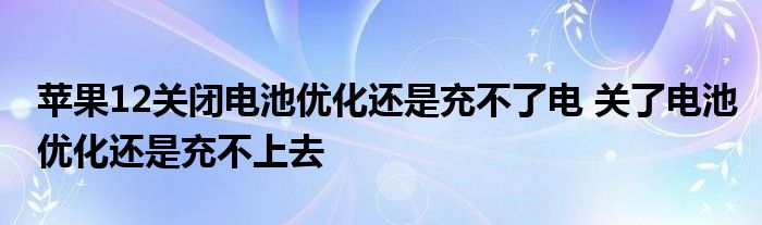 大家好,小詹來為大家解答以上問題。蘋果12關閉電池優化還是充不了電,關了電池優化還是充不上去很多人還不知道,現在讓我們一起來看看吧!