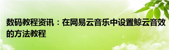 現(xiàn)在各種各樣的數(shù)碼設備在我們的生活當中幾乎可以說是無處不在,平時我們使用的手機,IP,電腦等等這些都屬于數(shù)碼設備,那么這些數(shù)碼設備當中會存在著很多的功能,當然在我們使用的過程當中自然也會出現(xiàn)說各種的問題,那么我們?nèi)绾尾拍苋ソ鉀Q這些問題以及使用好這些功能呢?這個時候就需要我們?nèi)チ私膺@些功能及問題的解決方法,今天小編就來給大家分享下,關于在網(wǎng)易云音樂中設置鯨云音效的方法教程方面的問題及功能的詳細內(nèi)容,希望下面小編為大家分享的內(nèi)容對大家來說有一定的幫助哦。在網(wǎng)易云音樂中設置鯨云音效的方法教程