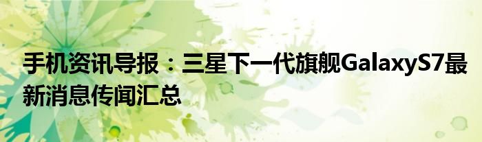 此前有韓國媒體披露Galaxy S7或將提前發布的消息,但根據《韓國時報》援引韓國投資公司Korea Investment的消息稱,三星將于明年2月份在巴塞羅那舉辦的世界移動通信大會(MWC2016)上推出Galaxy S7。