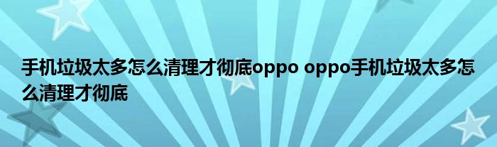 大家好,小詹來為大家解答以上問題。手機垃圾太多怎么清理才徹底oppo,oppo手機垃圾太多怎么清理才徹底很多人還不知道,現在讓我們一起來看看吧!