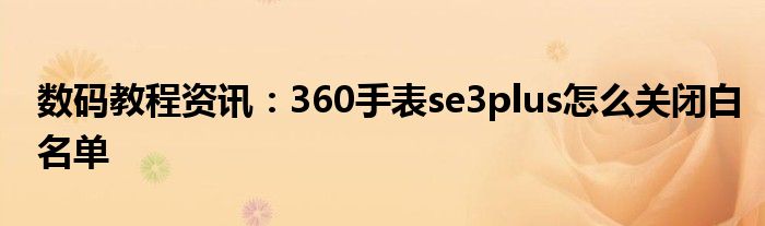現在各種各樣的數碼設備在我們的生活當中幾乎可以說是無處不在,平時我們使用的手機,IP,電腦等等這些都屬于數碼設備,那么這些數碼設備當中會存在著很多的功能,當然在我們使用的過程當中自然也會出現說各種的問題,那么我們如何才能去解決這些問題以及使用好這些功能呢?這個時候就需要我們去了解這些功能及問題的解決方法,今天小編就來給大家分享下,關于360手表se3plus怎么關閉白名單方面的問題及功能的詳細內容,希望下面小編為大家分享的內容對大家來說有一定的幫助哦。360手表se3plus怎么關閉白名單?