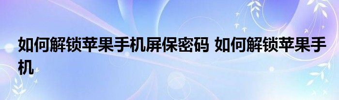 大家好,小柏來為大家解答以上問題。如何解鎖蘋果手機屏保密碼,如何解鎖蘋果手機很多人還不知道,現在讓我們一起來看看吧!