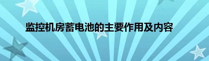 大家好,小科來為大家解答以上問題。監(jiān)控機(jī)房蓄電池的主要作用及內(nèi)容這個(gè)很多人還不知道,現(xiàn)在讓我們一起來看看吧!