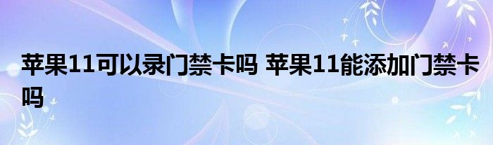 大家好,小詹來為大家解答以上問題。蘋果11可以錄門禁卡嗎,蘋果11能添加門禁卡嗎很多人還不知道,現在讓我們一起來看看吧!