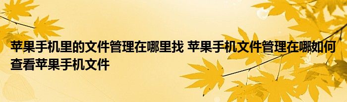 大家好,小柏來為大家解答以上問題。蘋果手機里的文件管理在哪里找,蘋果手機文件管理在哪如何查看蘋果手機文件很多人還不知道,現在讓我們一起來看看吧!