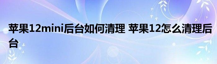 大家好,小詹來為大家解答以上問題。蘋果12mini后臺如何清理,蘋果12怎么清理后臺很多人還不知道,現在讓我們一起來看看吧!