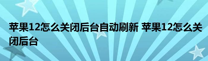 大家好,小詹來(lái)為大家解答以上問(wèn)題。蘋(píng)果12怎么關(guān)閉后臺(tái)自動(dòng)刷新,蘋(píng)果12怎么關(guān)閉后臺(tái)很多人還不知道,現(xiàn)在讓我們一起來(lái)看看吧!
