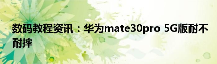 現在各種各樣的數碼設備在我們的生活當中幾乎可以說是無處不在,平時我們使用的手機,IP,電腦等等這些都屬于數碼設備,那么這些數碼設備當中會存在著很多的功能,當然在我們使用的過程當中自然也會出現說各種的問題,那么我們如何才能去解決這些問題以及使用好這些功能呢?這個時候就需要我們去了解這些功能及問題的解決方法,今天小編就來給大家分享下,關于華為mate30pro 5G版耐不耐摔方面的問題及功能的詳細內容,希望下面小編為大家分享的內容對大家來說有一定的幫助哦。華為mate30pro 5G版耐不耐摔