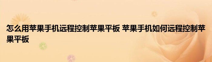 大家好,小柏來為大家解答以上問題。怎么用蘋果手機遠程控制蘋果平板,蘋果手機如何遠程控制蘋果平板很多人還不知道,現在讓我們一起來看看吧!