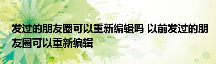 大家好,小琪來為大家解答以上問題。發過的朋友圈可以重新編輯嗎,以前發過的朋友圈可以重新編輯這個很多人還不知道,現在讓我們一起來看看吧!