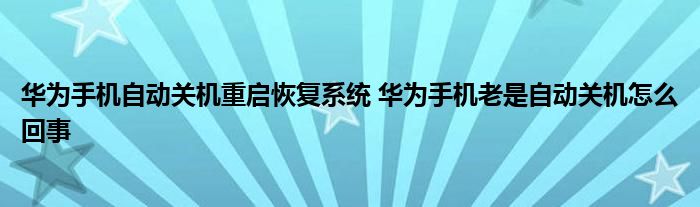 大家好,小詹來(lái)為大家解答以上問題。華為手機(jī)自動(dòng)關(guān)機(jī)重啟恢復(fù)系統(tǒng),華為手機(jī)老是自動(dòng)關(guān)機(jī)怎么回事很多人還不知道,現(xiàn)在讓我們一起來(lái)看看吧!