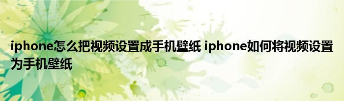 大家好,小琪來為大家解答以上問題。iphone怎么把視頻設置成手機壁紙,iphone如何將視頻設置為手機壁紙這個很多人還不知道,現在讓我們一起來看看吧!