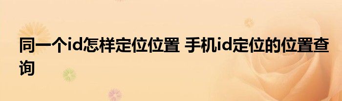 大家好,小詹來為大家解答以上問題。同一個id怎樣定位位置,手機id定位的位置查詢很多人還不知道,現(xiàn)在讓我們一起來看看吧!