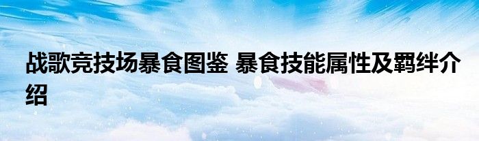 以上就是關于戰歌競技場暴食技能屬性及羈絆介紹,小伙伴們學會了嗎?希望以上攻略能給玩家們帶來一定的幫助,喜歡的玩家們千萬不要錯過哦!