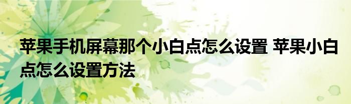 大家好,小琪來為大家解答以上問題。蘋果手機屏幕那個小白點怎么設置,蘋果小白點怎么設置方法這個很多人還不知道,現在讓我們一起來看看吧!