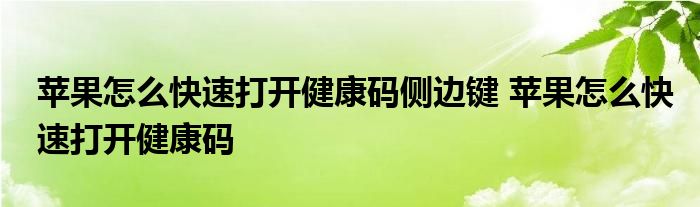 大家好,小琪來為大家解答以上問題。蘋果怎么快速打開健康碼側邊鍵,蘋果怎么快速打開健康碼這個很多人還不知道,現在讓我們一起來看看吧!