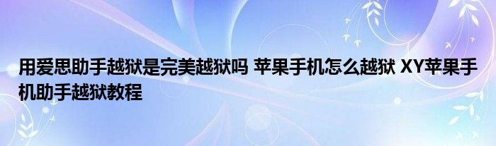 大家好,小柏來為大家解答以上問題。用愛思助手越獄是完美越獄嗎,蘋果手機(jī)怎么越獄 XY蘋果手機(jī)助手越獄教程很多人還不知道,現(xiàn)在讓我們一起來看看吧!