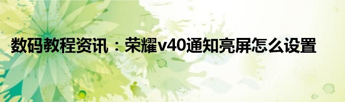 現(xiàn)在各種各樣的數(shù)碼設(shè)備在我們的生活當(dāng)中幾乎可以說(shuō)是無(wú)處不在,平時(shí)我們使用的手機(jī),IP,電腦等等這些都屬于數(shù)碼設(shè)備,那么這些數(shù)碼設(shè)備當(dāng)中會(huì)存在著很多的功能,當(dāng)然在我們使用的過(guò)程當(dāng)中自然也會(huì)出現(xiàn)說(shuō)各種的問(wèn)題,那么我們?nèi)绾尾拍苋ソ鉀Q這些問(wèn)題以及使用好這些功能呢?這個(gè)時(shí)候就需要我們?nèi)チ私膺@些功能及問(wèn)題的解決方法,今天小編就來(lái)給大家分享下,關(guān)于榮耀v40通知亮屏怎么設(shè)置方面的問(wèn)題及功能的詳細(xì)內(nèi)容,希望下面小編為大家分享的內(nèi)容對(duì)大家來(lái)說(shuō)有一定的幫助哦。榮耀v40通知亮屏怎么設(shè)置?