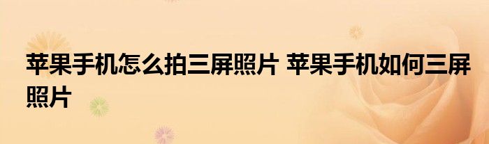 大家好,小詹來為大家解答以上問題。蘋果手機怎么拍三屏照片,蘋果手機如何三屏照片很多人還不知道,現在讓我們一起來看看吧!