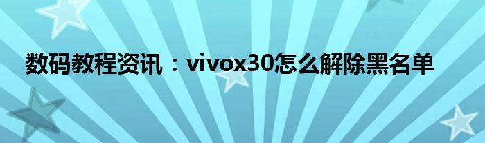 現(xiàn)在各種各樣的數(shù)碼設(shè)備在我們的生活當(dāng)中幾乎可以說是無處不在,平時(shí)我們使用的手機(jī),IP,電腦等等這些都屬于數(shù)碼設(shè)備,那么這些數(shù)碼設(shè)備當(dāng)中會存在著很多的功能,當(dāng)然在我們使用的過程當(dāng)中自然也會出現(xiàn)說各種的問題,那么我們?nèi)绾尾拍苋ソ鉀Q這些問題以及使用好這些功能呢?這個(gè)時(shí)候就需要我們?nèi)チ私膺@些功能及問題的解決方法,今天小編就來給大家分享下,關(guān)于vivox30怎么解除黑名單方面的問題及功能的詳細(xì)內(nèi)容,希望下面小編為大家分享的內(nèi)容對大家來說有一定的幫助哦。vivox30怎么解除黑名單