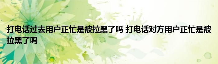 大家好,小琪來為大家解答以上問題。打電話過去用戶正忙是被拉黑了嗎,打電話對方用戶正忙是被拉黑了嗎這個很多人還不知道,現在讓我們一起來看看吧!