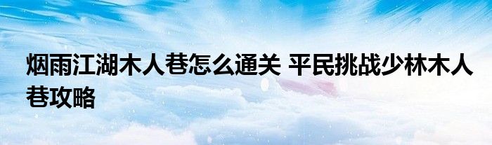 煙雨江湖木人巷怎么通關 平民挑戰少林木人巷攻略