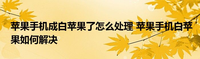 大家好,小柏來為大家解答以上問題。蘋果手機成白蘋果了怎么處理,蘋果手機白蘋果如何解決很多人還不知道,現在讓我們一起來看看吧!