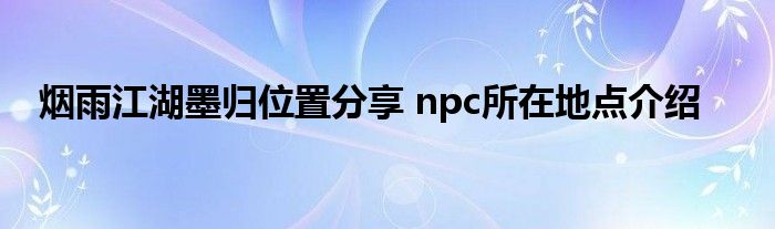 煙雨江湖墨歸位置分享 npc所在地點(diǎn)介紹