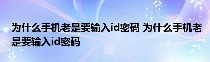 大家好,小詹來為大家解答以上問題。為什么手機老是要輸入id密碼,為什么手機老是要輸入id密碼很多人還不知道,現在讓我們一起來看看吧!