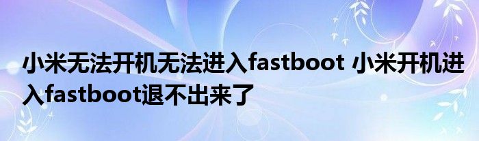 大家好,小琪來為大家解答以上問題。小米無法開機無法進入fastboot,小米開機進入fastboot退不出來了這個很多人還不知道,現在讓我們一起來看看吧!