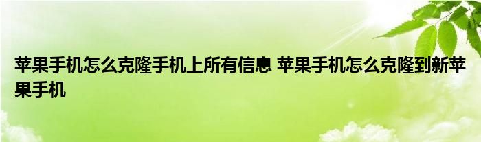 大家好,小柏來為大家解答以上問題。蘋果手機怎么克隆手機上所有信息,蘋果手機怎么克隆到新蘋果手機很多人還不知道,現在讓我們一起來看看吧!