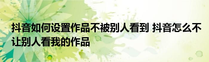 大家好,小琪來為大家解答以上問題。抖音如何設置作品不被別人看到,抖音怎么不讓別人看我的作品這個很多人還不知道,現在讓我們一起來看看吧!