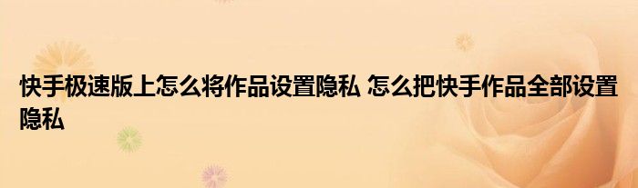 大家好,小琪來為大家解答以上問題。快手極速版上怎么將作品設置隱私,怎么把快手作品全部設置隱私這個很多人還不知道,現在讓我們一起來看看吧!